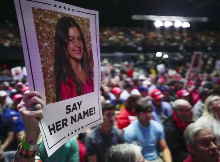 “Tener un proyecto de ley de tanta importancia nombrado en su honor es un gran, gran homenaje”, dijo Trump. “Esta nueva forma de crimen, criminales ilegales, es — es masiva, los números son masivos y eso se suma al crimen que ya teníamos”.