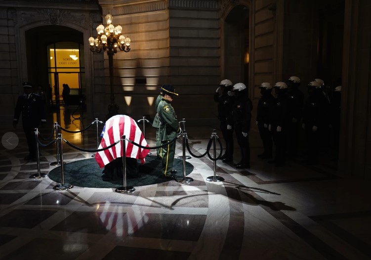 Carter estuvo entre los muchos habitantes de San Francisco y líderes políticos que trajeron flores, inclinaron la cabeza o juntaron las manos en oración mientras permanecían ante el ataúd de Feinstein, que estaba envuelto en una bandera estadounidense y exhibido detrás de cuerdas de terciopelo. Muchos dijeron que nunca habían conocido a Feinstein, pero querían honrar a un servidor público infatigable que luchó para nivelar el campo de juego para las mujeres, los miembros de la comunidad LGBTQ y las minorías raciales.