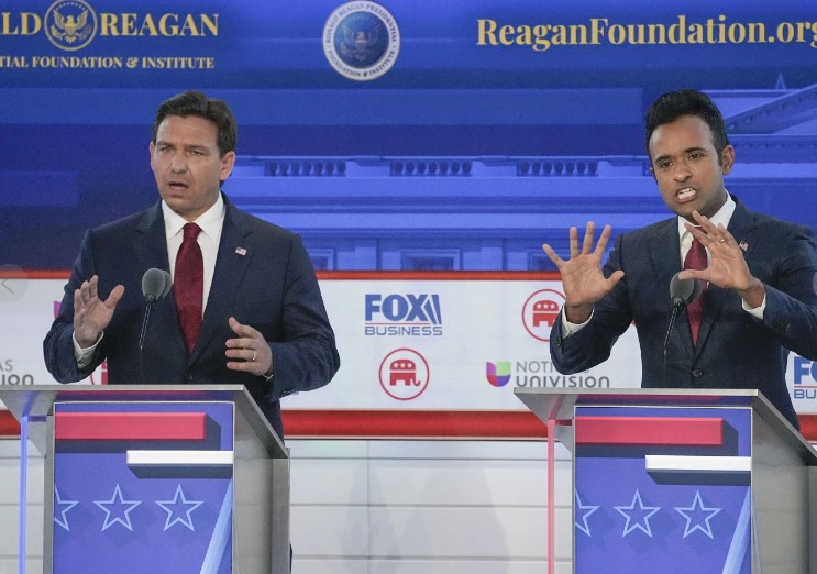 SIMI VALLEY, California, EE.UU. (AP) — Los rivales de Donald Trump lo atacaron en reiteradas oportunidades el miércoles durante el segundo debate entre aspirantes a la nominación presidencial del Partido Republicano, en el que arremetieron contra el expresidente por ausentarse del evento mientras tratan de reducir la ventaja que éste lleva de cara a las elecciones primarias.Trump, en cambio, viajó a Michigan en un intento de sacar provecho a la huelga del sindicato United Auto Workers y de atraer a los obreros sindicalizados en un estado crucial que podría ayudar a decidir la elección general. Sus competidores, mientras tanto, se negaron a participar en un juego propuesto por los moderadores en la Biblioteca Ronald Reagan al estilo de los reality show, eligiendo a quién descartarían de la pugna o votarían “fuera de la isla”.