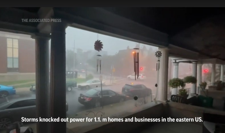 WASHINGTON (AP) — Al menos dos personas murieron, miles de vuelos en EE. UU. fueron cancelados o retrasados, y más de 1,1 millones de hogares y negocios se quedaron sin electricidad el lunes debido a tormentas severas, incluyendo granizo y relámpagos, que azotaron el este de EE. UU.El Servicio Meteorológico Nacional emitió una alerta de tornado para el área metropolitana de DC . área, que duró hasta las 9 pm Una declaración especial del Servicio Meteorológico advirtió: "Existe una amenaza significativa de vientos huracanados dañinos y localmente destructivos, junto con el potencial de granizo grande y tornados, incluso tornados fuertes".