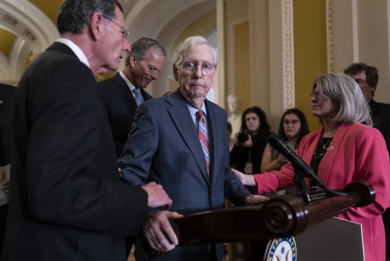 McConnell, de 81 años, estuvo fuera del Senado durante casi seis semanas a principios de este año después de caerse y golpearse la cabeza después de una cena en un hotel. Estuvo hospitalizado durante varios días, y su oficina dijo más tarde que sufrió una conmoción cerebral y se fracturó una costilla. Su discurso ha sonado más vacilante en las últimas semanas, lo que ha provocado preguntas entre algunos de sus colegas sobre su salud.