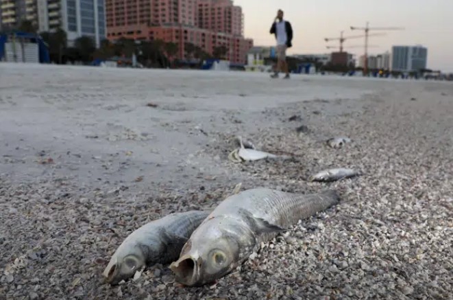 Alrededor de 455 kilogramos (1.000 libras) de peces muertos fueron retirados de las playas de St. Pete Beach desde principios de mes, dijo al periódico la supervisora de parques en la ciudad, Mandy Edmunds.