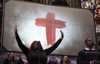 La iglesia ha pedido con frecuencia que se tomen medidas contra la violencia callejera, incluso cuando las tasas de delitos violentos en Chicago han disminuido considerablemente en los últimos años como parte de una tendencia nacional . Sus grandes vitrales representan la vida de los esclavos y conmemoran a las personas negras asesinadas por la violencia. El domingo, la iglesia celebró la colocación de la primera piedra de un centro de arte y activismo cercano que, según afirmó, forma parte de la solución.