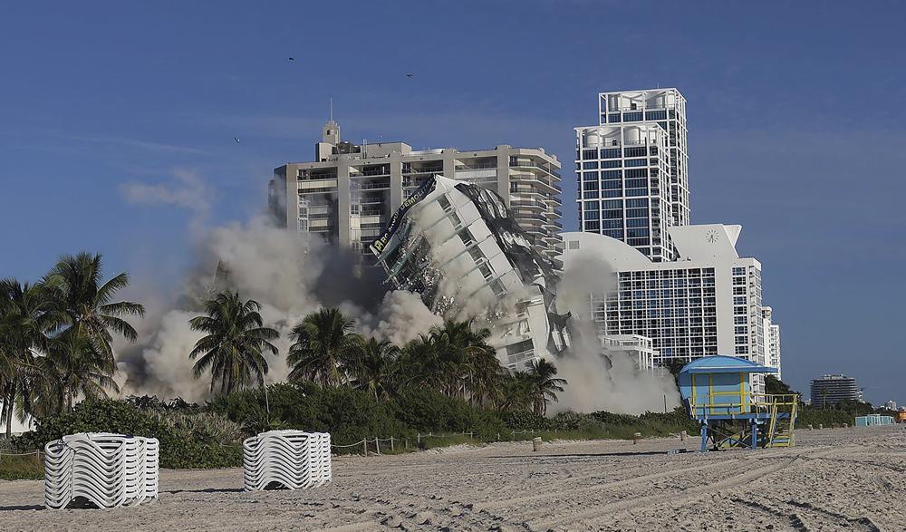 El Hotel Deauville, de 17 pisos, se derrumbó después de varias explosiones que levantaron una gran nube de polvo. El hotel se construyó en 1957 y Kennedy dio un discurso en él ante la Convención de Jóvenes Demócratas en 1961.