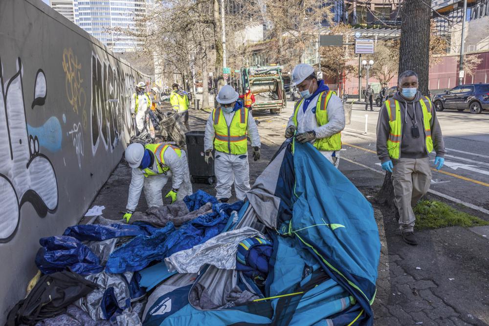 En Seattle, el nuevo alcalde Bruce Harrell postuló en una plataforma que pedía acción en los campamentos, centrándose en ciudades de tiendas de campaña muy visibles en sus primeros meses en el cargo. Frente al Ayuntamiento, el miércoles se retiraron dos cuadras de tiendas de campaña y pertenencias. El despeje marcó el final de un enfrentamiento de dos semanas y media entre el alcalde y los activistas que ocuparon el campamento, trabajando por turnos para evitar que las personas sin hogar fueran trasladadas.