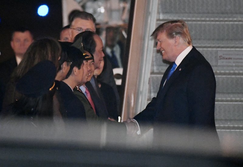 El presidente de Estados Unidos, Donald Trump, saludó a los funcionarios en Vietnam, donde se reunirá con el líder norcoreano Kim Jong Un (Kim Jawng Oon).
