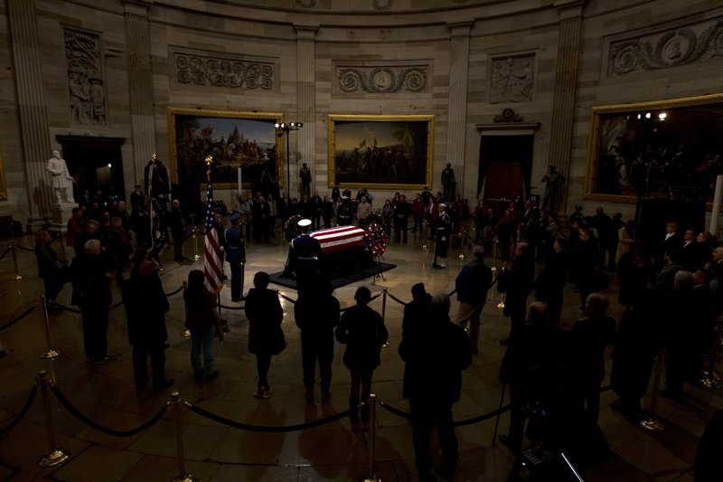 WASHINGTON (AP) - La capital de la nación se despide el miércoles del difunto ex presidente George HW Bush en un servicio de oración y alabanza que reúne a enviados mundiales, estadounidenses de alto cargo y un tipo de Maine que solía arreglar las cosas. En la casa de Bush sobre el agua.Una visita para el 41º presidente en el silencioso Capitol Rotunda cerró el miércoles por la mañana. Una ceremonia en la Catedral Nacional de Washington, el nexo de los funerales estatales, culminará tres días de conmemoración por parte de dignatarios y ciudadanos comunes al honrar al presidente republicano que supervisó la transición posterior a la Guerra Fría y dirigió una exitosa Guerra del Golfo, solo para perder la recompensa. elección en un cambio generacional al demócrata Bill Clinton en 1992.